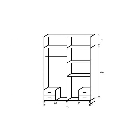 Alin1 TM 160 cm VÁLLFÁS-POLCOS GARDRÓB